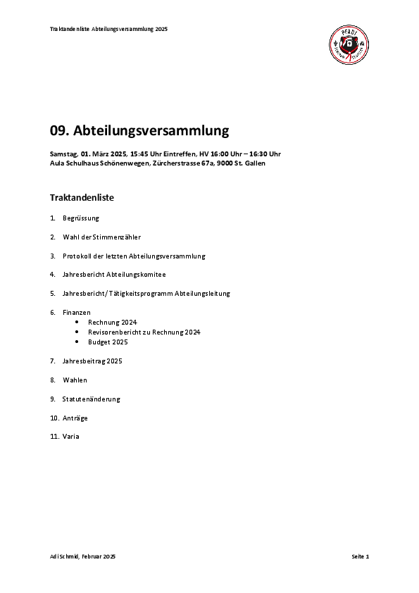 Hier findest du die Traktanden und das Protokoll der Mitgliederversammlung vom 1. März 2025.
